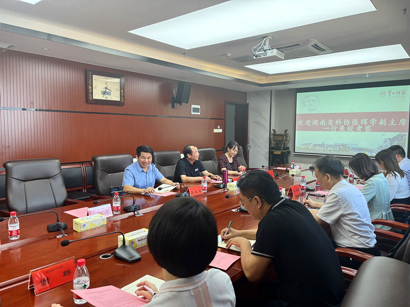 9月27日下午,湖南省科学家协会党组成员、副主席协张辉学一行五人来公司考察交流,洽谈湖南省科学家精神宣传阵地建设及湖南省展览馆与球速体育馆院合作的有关事宜。公司党委委员、副董事长周发明、原公司党委副书记刘志敏及宣传部、科研处、教务处、球速体育等部门负责人及教师代表参加接待与座谈。座谈会由科研处处长黄小喜主持。