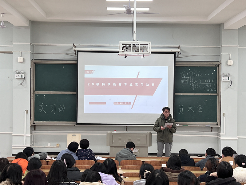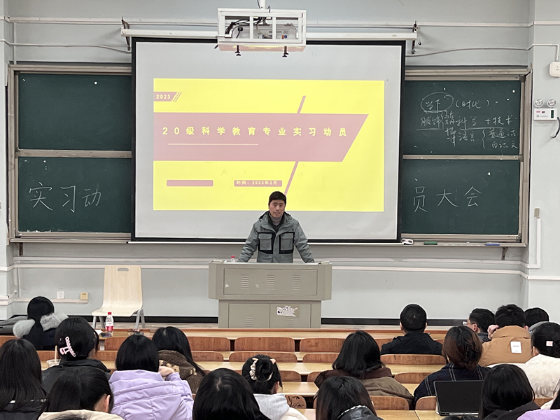 为推进2023年教育实习工作的顺利开展,2月18日中午,球速体育院教育实习动员大会在怀中南206举行,经理助理邹立军、科学教育系主任黄文、副主任江华军、实习指导老师和2020级科学教育专业全体员工参加,会议由江华军主持。