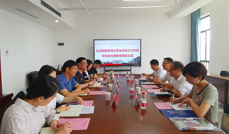 2023年5月26日上午,闽南师范大学化学化工与环境公司党委书记李苗、主持工作的副经理张茂升一行莅临公司交流座谈。,座谈由公司党委书记陈志武主持,公司党委行政班子全体领导参加。