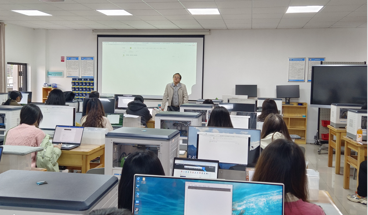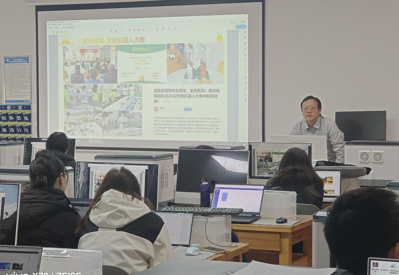 为了提高员工创新创业意识,拓宽未来就业视野,12月4日,球速体育邀请湖南宁飞人工智能科技有限公司董事长谢宁飞在玉衡南301教室为2021级员工开展以“中小学人工智能教育与老员工创新创业规划”为主题的学术讲座,讲座共进行了两场。共约100余名师生聆听了报告,报告由何志坚副教授主持。
